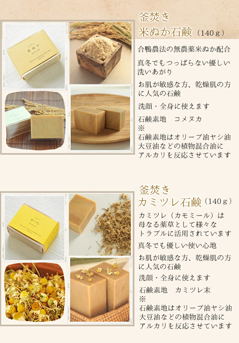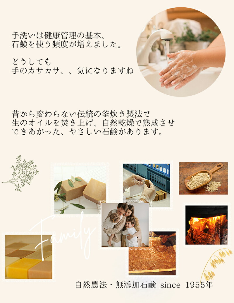 | 注意点 | 簡易包装でお届け致します。無添加石鹸は別途ギフト包装が可能です。(有料)ご注文の際にご選択ください。 |