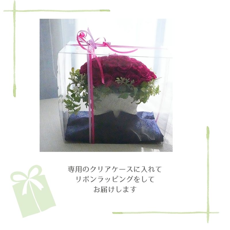 | 注意点 | プリザーブドフラワーですのでお水を与えないでください。1点ずつ表情が違います。 |